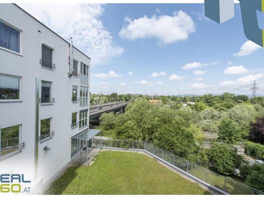 KUBUS - BÜRO - MODERN - PARKEN QUICKFACTS Nutzfläche gesamt: ca. 114 m² Raumaufteilung: Siehe Plan Stockwerk: 1. OG Parkplätze: 1 TG Parkplatz mit Ladeanschluss, Besucherparkplätze Loggia: ca. 6,88 m...