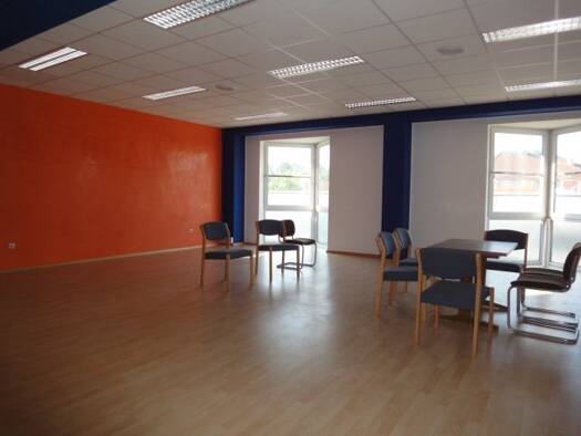 Die bezugsfertigen Räume können ab sofort angemietet werden. Die Nutzfläche von ca. 86 m² teilt sich wie folgt auf: Ein großzügiger Empfangsbereich, drei geräumige Büroräume, ein größerer Sozialraum ...