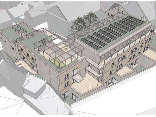 Die Bürohäuser erstrecken sich über vier Etagen und umfasst eine Gesamtnutzfläche von 1.723 m², die sich flexibel nutzen lässt. Ein weitläufiges, lichtdurchflutetes Foyer bildet den Eingangsbereich d...
