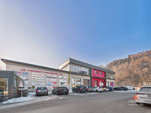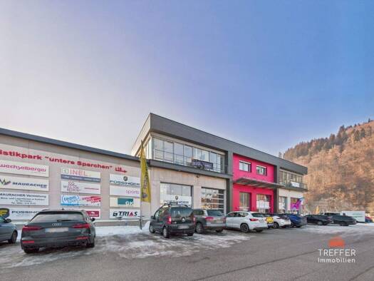 Diese Gewerbeimmobilie in Kufstein verbindet Büroflächen mit funktionalen Lagerbereichen in attraktiver Lage. Im Obergeschoss stehen 297 m² zur Verfügung, aufgeteilt in ein Empfangsbüro, einen Aufent...