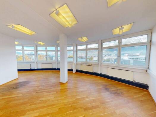 Helle, großzügige Räume, beste Aussicht auf die Berge und eine Anfahrt ohne jeden Umweg: Diese 125 m² große Büroeinheit verbindet angenehmes Arbeiten mit praktischer direkter Erreichbarkeit - für Mit...