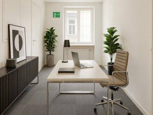 Zur Vermietung steht ein vollmöbliertes, optimal geschnittenes Büro in einem gepflegten Wiener Altbau, dessen Ursprünge um 1800 datieren. Die Bürofläche mit ca. 42,54 m² Nutzfläche befindet sich in e...
