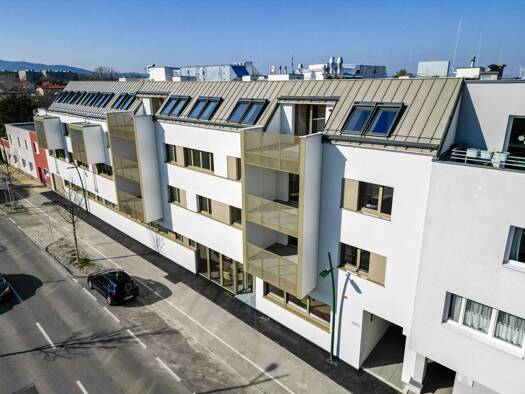 _Smartes und zeitloses Design._ Alle Wohnungen sind barrierefrei zugänglich und haben jeweils eine eigene Freifläche in Form von (Dach-) Terrasse, Loggia oder Balkon. Intelligente Grundrisse sorgen f...