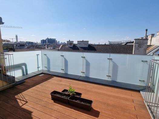 Neu errichtete 4-Zimmer-Wohnung mit Dachterrasse - Erstbezug im 6. Stock (3. Dachgeschoss) eines schönen Altbaus Die Küche wird noch auf Kosten des Vermieters eingebaut. Zum Verkauf steht eine...