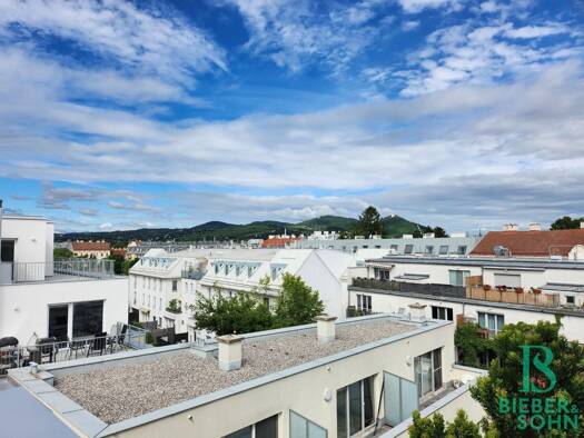 Wohnen über den Dächern Wiens - mit Weitblick & großer Terrasse Diese stilvolle 2-Zimmer-Dachgeschosswohnung mit getrennter Küche überzeugt mit durchdachtem Grundriss, viel Licht und einer g...