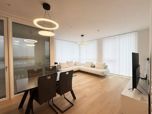 Kurzbeschreibung Das elegant gestaltete, 65 Meter hohe Wohnhochhaus von den Architekten Jabornegg & Pálffy besticht durch seine bodentiefen Fenster und Schiebeläden - die jeweils die Funktion des...