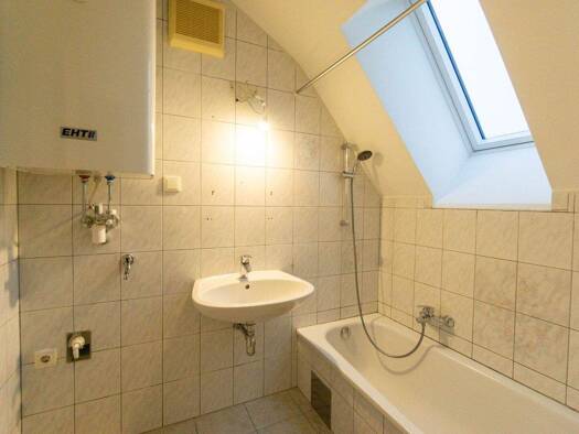 Die ruhig gelegene Wohnung ist nach Süd-Westen ausgerichtet und befindet sich im Dachgeschoß (2. Stock). Die gepflegte Wohnung gliedert sich in einen Vorraum, ein Badezimmer, ein separates WC, eine K...