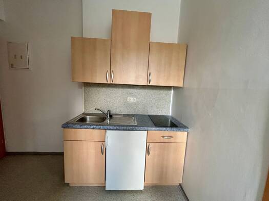 Die teilrenovierte Kleinwohnung im Hochparterre beinhaltet einen Wohn-Schlafraum, eine möblierte Küche mit Elektrogeräten, ein Badezimmer mit Dusche und Toilette, Abstellkammerl und Vorraum sowie ein...