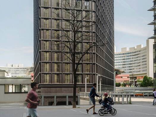 Kurzbeschreibung Das elegant gestaltete, 65 Meter hohe Wohnhochhaus von den Architekten Jabornegg & Pálffy besticht durch seine bodentiefen Fenster und Schiebeläden - die jeweils die Funktion des...