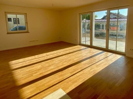 Die neu errichtete Erdgeschosswohnung in einem Dreifamilienhaus bietet auf ca. 120 m² vier großzügige Zimmer und überzeugt durch eine durchdachte Raumaufteilung sowie hochwertige Materialien. Der off...