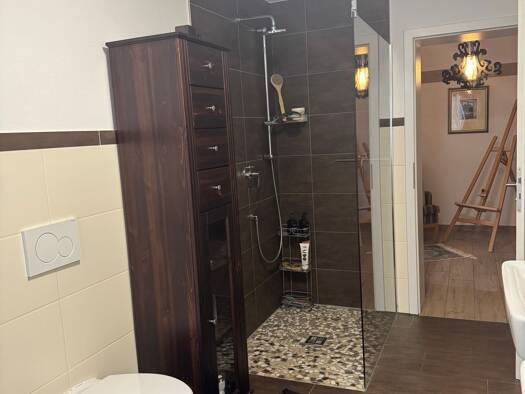 Die Wohnung wurde im Zusammenhang des gesamten Hauses unter Denkmalschutzauflagen komplett neu saniert, wobei die Raumaufteilung den historischen Gegebenheiten geschuldet ziemlich unverändert blieb.