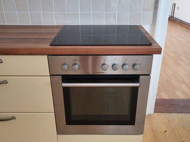 Die Wohnung verfügt über drei Zimmer. Ein Wohnzimmer mit moderner offener Einbauküche, zwei weitere Zimmer, ein Bad mit Dusche und ein WC. Ideale Raumaufteilung. Parkettböden, Fliesen Gasetagenheizun...