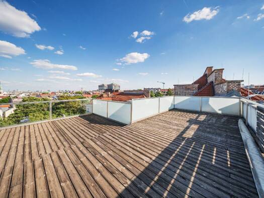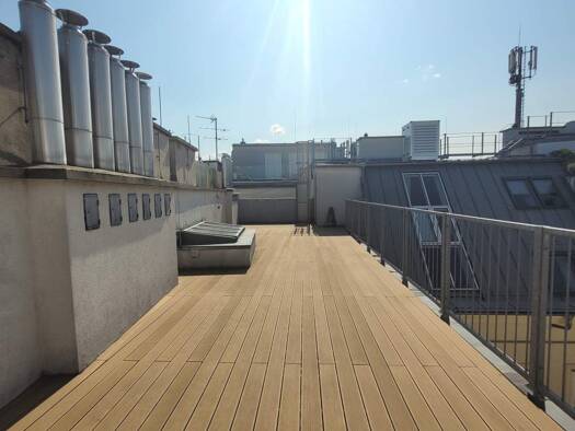 Zur befristeten Vermietung gelangt eine helle moderne Dachterrassenmaisonette - Nähe Schottenring/Donaukanal. Das Gebäude wurde 1870 im Stil der Wiener Neorenaissance errichtet und 2022 generals...