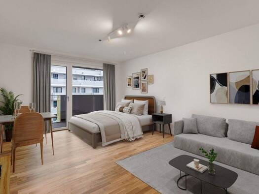 Herrliches Studio mit Terrasse und Grünblick in Ruhelage Vollmöblierter Erstbezug - All In Miete - exkl. Strom English Version below! Gebäude Der zeitgemäße Neubau wurde vor Kurzem in einer ruhigen S...
