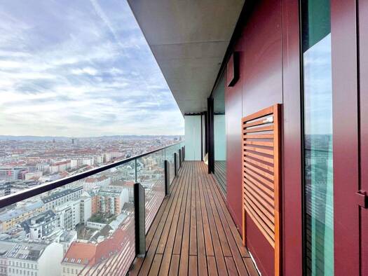 Zur Vermietung gelangt eine der schönsten Wohnungen, im 23. Stock des 1. TrIIIple Turms mit großartigem Ausblick und folgender Raumaufteilung: Vorzimmer, Wohnzimmer mit hochwertiger Küche, 2 Schlafzi...