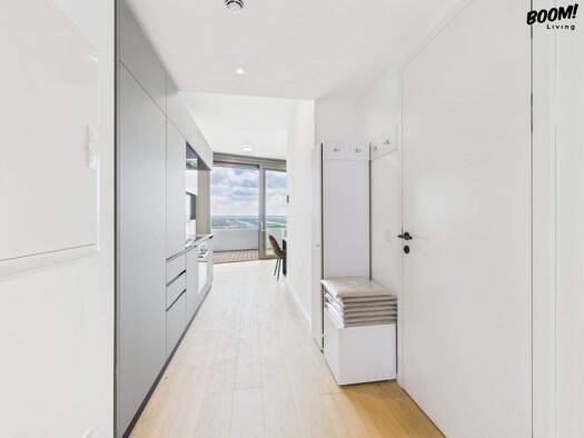 Willkommen im 23. Stock der legendären Danube Flats - wo Design, Komfort und Lifestyle auf höchstem Niveau verschmelzen. Dieses exklusive Apartment mit ca. 33 m² Wohnfläche und zusätzlich 3,5 m² trau...