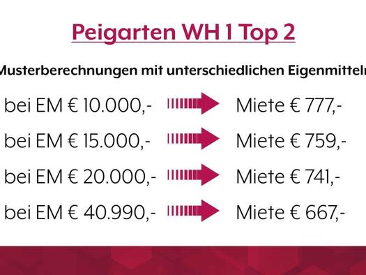 Kurzbeschreibung WAV | Peigarten | WH 1 | Top 2 Objekt *Die regulären Eigenmittel für diese Wohneinheit betragen aktuell 40.990,-. Eine Reduktion auf mindestens 10.000,- ist auf Wunsch möglich. Natür...