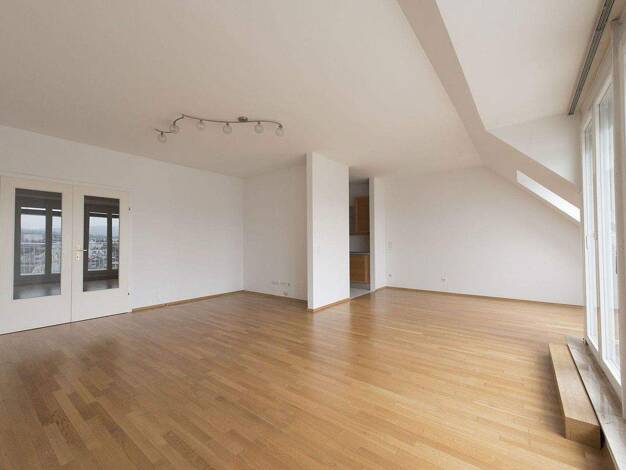 Ein Traum für Fans des minimalitisch-puristischen Wohnens ist dieses neu sanierte Dachgeschoss Studio in Wien Aspern. Der große lichtdurchflutete Wohnraum hat eine durchgehende Fensterfront mit boden...
