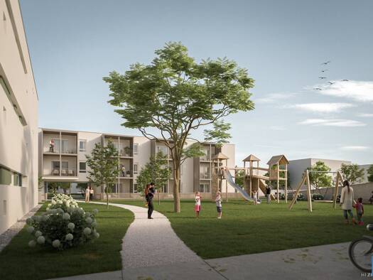 Die Wohnanlage umfasst 3 Wohnhäuser mit insgesamt 61 Wohnungen zur Miete oder in Miete mit Kaufoption, bestehend aus 34 kompakten Zweiraumwohnungen mit ca. 60 m², 21 geräumigen Dreizimmerwohnung...