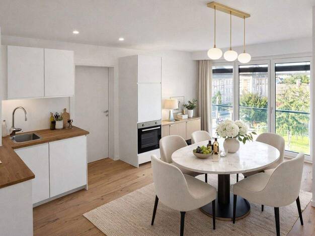HIGHLIGHTS * Mietbeginn per 1. oder 15. eines Monats möglich * Terrasse, Garten, Balkon oder Loggia * Moderne Einbauküche * Eichenparkettböden * Stützkühlung (in den Regelgeschossen) und thermische B...