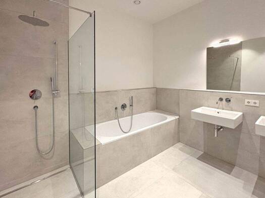Die Wohnung befindet sich im Dachgeschoss eines 2022 fertiggestellten Gebäudes mit nur fünf Wohneinheiten. Im Eingangsbereich befindet sich viel Platz für eine Garderobe. Über eine Treppe gelan...