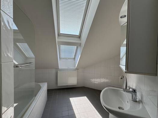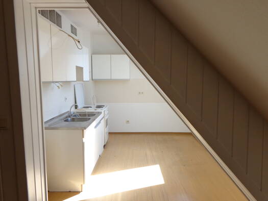 Diese helle Single-Wohnung befindet sich im Dachgeschoss (2. Stock) eines Mehrparteienhauses in zentraler Lage. Die Wohnfläche von ca. 30m² teilt sich wie folgt auf: Vorraum, ein Raum für Kochen, Ess...