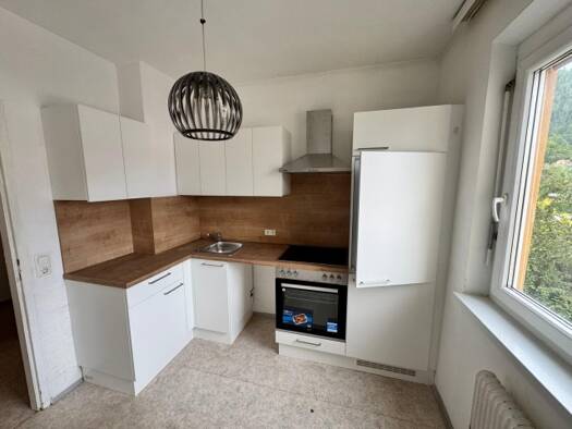 Ruhige 2-Zimmer-Altbauwohnung mit Küchenblock im 1. Obergeschoss eines Mehrparteienhauses im Zentrum von Krieglach im Mürztal zu mieten. Die Wohnung beinhaltet eine Wohnküche inklusive neuwertigen Kü...