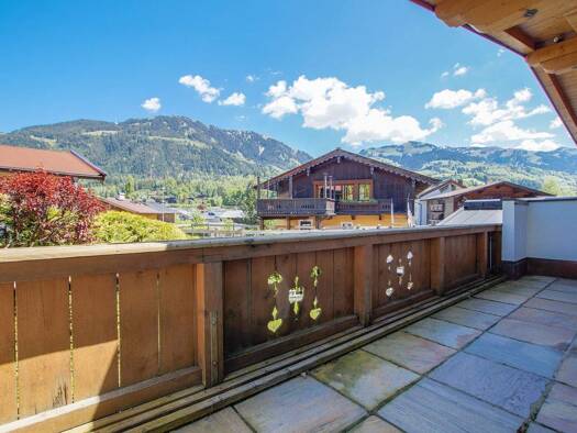 Herrlich gestaltete Dachgeschoss- Wohnung mit einer außergewöhnlich großen Dachterrasse. Die besondere Liegenschaft auf der Sonnenseite Kitzbühels bietet einen einzigartigen Panoramablick über die Dä...
