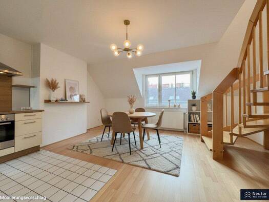 Zur Vermietung gelangt diese charmante Dachgeschoss-Maisonette mit ca. 104 m² Gesamtwohnfläche, die sich großzügig über zwei Ebenen erstreckt. Drei gut geschnittene Zimmer, zwei Terrassen, sowie die ...