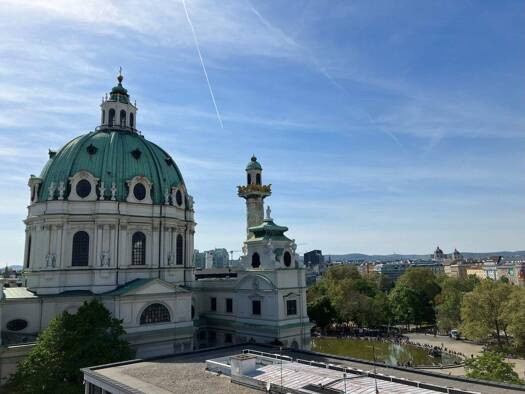 2-ZIMMER-WOHNUNG MIT CA. 42 M² WOHNFLÄCHE UND EINER GROSSEN GEMEINSCHAFTSDACHTERRASSE MIT BLICK AUF DEN KARLSPLATZ SUCHT NEUE BEWOHNER/INNEN AB JUNI 2026! Die Wohnung befindet sich im Zweiten ...