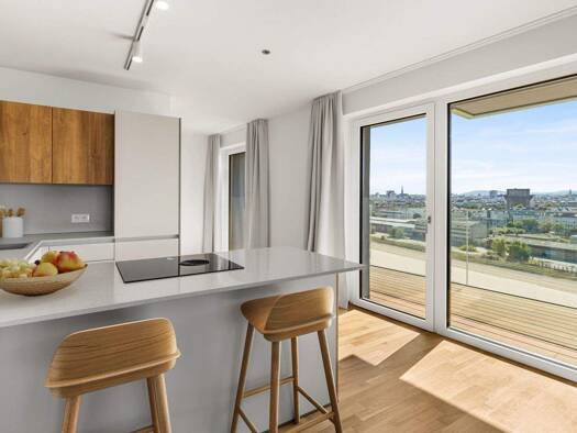 Diese großzügige und bestens aufgeteilte 2-Zimmer-Wohnung befindet sich im letzten Liftstock eines gepflegten Wohnhauses und überzeugt vor allem durch ihre außergewöhnliche 27 m² große Terrasse (Rich...