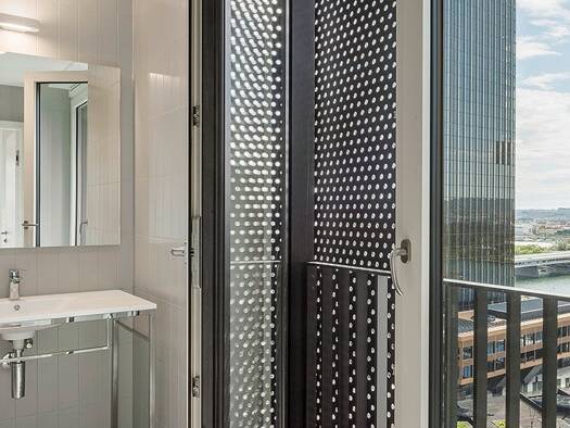 Kurzbeschreibung Das elegant gestaltete, 65 Meter hohe Wohnhochhaus von den Architekten Jabornegg & Pálffy besticht durch seine bodentiefen Fenster und Schiebeläden - die jeweils die Funktion des...