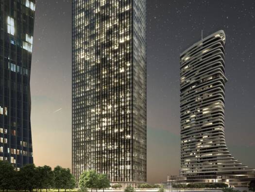 Kurzbeschreibung Das elegant gestaltete, 65 Meter hohe Wohnhochhaus von den Architekten Jabornegg & Pálffy besticht durch seine bodentiefen Fenster und Schiebeläden - die jeweils die Funktion des...