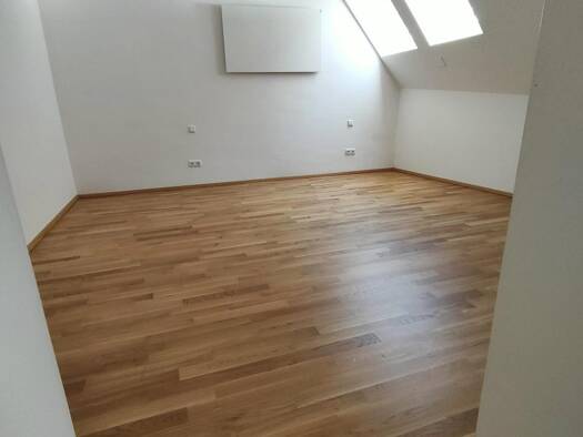 Aussergewöhnliche Dachgeschoßwohung mit Blick auf die Enns. Eine Küche ist möbliert. Im Bad mit Dusche und WC haben wir eine Fußbodenheizung. Direkt am Fluss Enns haben wir eine allgemeine Grünfläche...