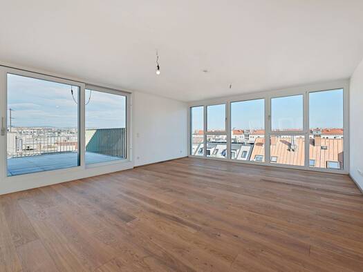 DAS PENTHOUSE Das spektakuläre Penthouse im Neubauprojekt Fahrbachgasse 6-8 in Meidling erhebt sich über den Dächern der Stadt und bietet ein unvergleichliches Wohngefühl für anspruchsvolle Bewohner....