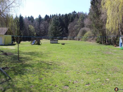Leicht hanglagiges 1.573m² Grundstück, bestehend aus 1.259m² vermessenem, aufgeschlossenem Bauland und angrenzendem 314m² Freiland am Waldrand. Das Baugrundstück weist die Widmung "Wohngebiet allgeme...