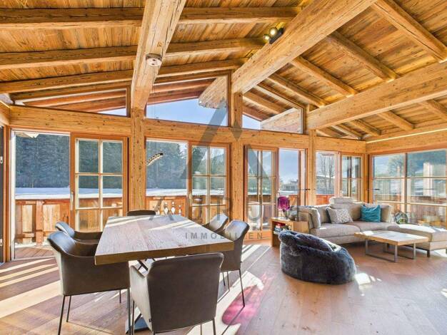 Ein Refugium mit Seele! Einfamilienhaus mit Schwimmteich und Einliegerwohnung im schönen Kössen in Tirol Dieses Einfamilienhaus in erhöhter Panoramalage strahlt eine besondere Wärme und Geborgenheit ...
