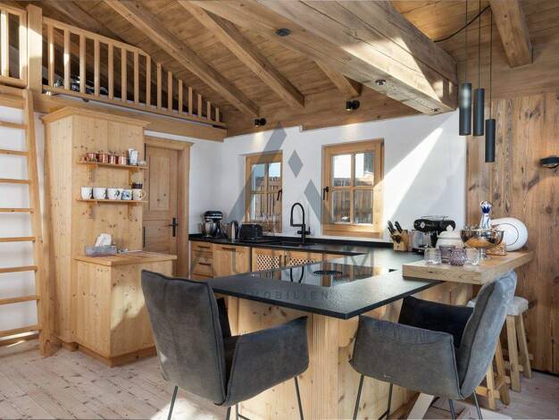 In absolut sonniger Toplage oberhalb des Golfplatzes Ellmau am Fuße des Wilden Kaisers, steht dieses luxuriöse Chalets mit fantastischem Ausblick. Auf insgesamt 3 Etagen, verbunden mit einem Lift, st...
