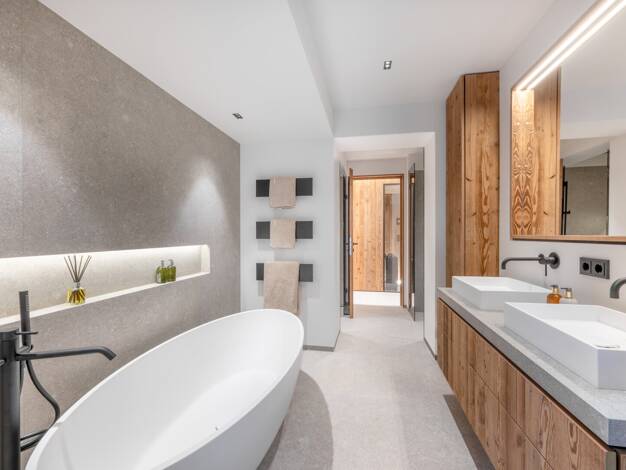 Der "Landsitz Wilder Kaiser" zeigt sich mächtig und prachtvoll als Refugium für Generationen. Ein unvergleichliches Raumangebot erstreckt sich über drei Etagen, die auch mit einem Lift verbunden sind...