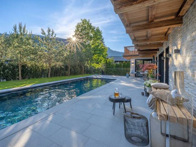 Eingebettet im sonnigen Villengebiet von Reith bei Kitzbühel zeigt sich diese, zum Verkauf stehende, Gartenwohnung mit privatem Pool bezugsfertig. Der Blick reicht vom Hahnenkamm-Gebiet bis zum Wilde...
